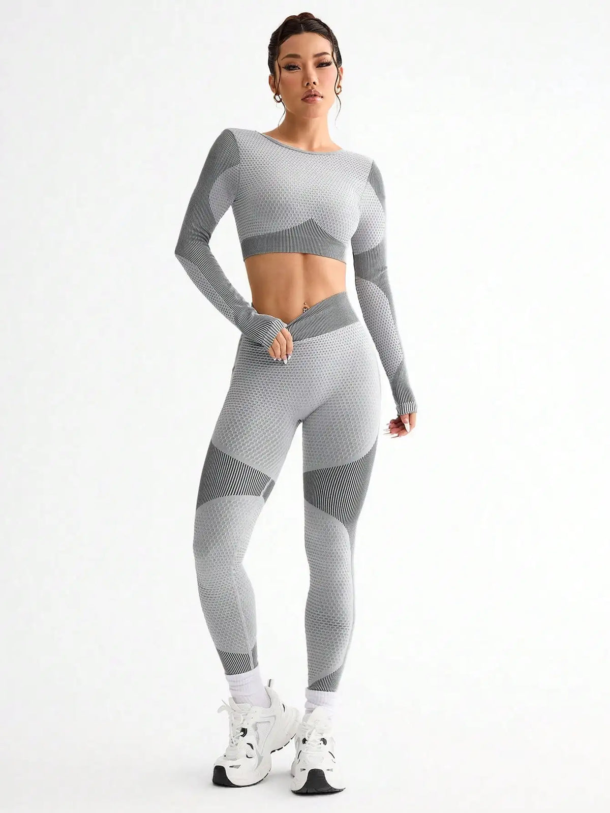 Women's seamless 2-piece yoga suit designed for comfort and performance. Features breathable fabric that moves with you through workouts, yoga, and everyday wear. Flattering fit with minimal seams for a sleek silhouette.